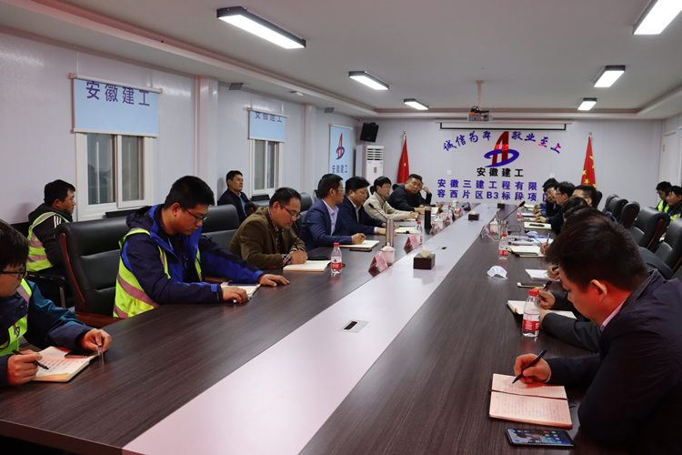 在認真察看項目現場后,何洪春在項目部組織召開了座談會。會上,何洪春對項目取得階段性成果表示肯定,并對施工、安全生產及現場需要解決的重難點問題提出具體意見建議。就項目管理及雄安分公司近期工作,何洪春提出四點要求:一是各參建單位要統一戰線,統一“一盤棋”思想,要快動作、高標準、嚴要求,不打折扣推進工作;二是各工區、各參戰人員要提高站位、主動作為、加強溝通、勇于承擔、發揚安徽建工“特別能吃苦、特別能戰斗”企業作風,克服困難,保障施工;三是項目管理要做好“五好措施”,暨計劃編制好、資源配置好、組織協調好、督促檢查好、服務保障好;四是雄安分公司要抓住機遇豎品牌、履約工程抓市場,繼往開來,共創輝煌。
