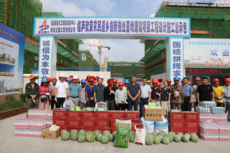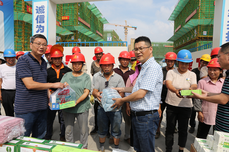 連日來,臨泉縣持續高溫,為深入開展“我為群眾辦實事”實踐教育活動,7月21日,臨廬產業園管委會與公司工會共同深入項目施工現場開展“送清涼,送健康,送關愛”活動,為項目一線員工送去了夏日關懷,同時叮囑項目管理人員嚴格做好夏季施工作業的各項防護工作,確保高溫天氣施工安全。臨廬產業園管委會副主任曹曙光、規劃建設局局長臧應,公司副總經理張為政等參加慰問。