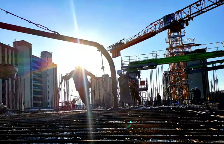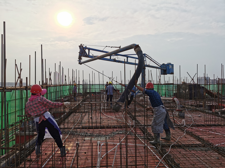 十一公司金寨明發中心項目澆筑混凝土,搶工期,促生產