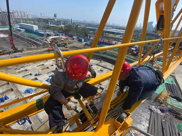 10月1日,設(shè)備租賃在合肥一中東校區(qū)項(xiàng)目進(jìn)行塔吊穿繩調(diào)試,確保塔吊設(shè)備安全運(yùn)行。