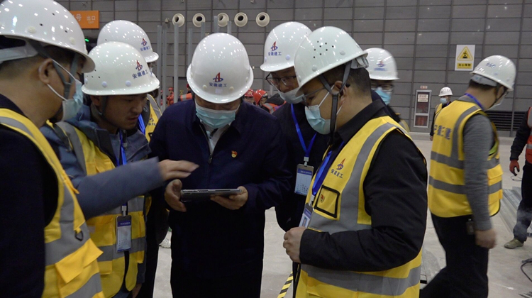 為了爭取時間,三建提前做好了人員、物資的準備工作,圖紙還未下達,安徽三建已經調集近200多名本地工人,落實核酸檢測和查驗雙碼,為進場施工做好準備工作。拿到圖紙后4個小時,項目部就制定了交叉作業的科學施工方案,同時下達了精確到小時的施工進度計劃。裝飾、安裝、土建立即投入施工。制定解決方案。辦法總比困難多。在施工過程中發現任何問題,項目部立即現場解決。現場停水48小時,項目就調用消防水車、購買飲用水,千方百計保證項目不停工。三建參戰的裝飾、安裝、土建團隊緊密配合,形成合力,確保了各項工作高速推進。