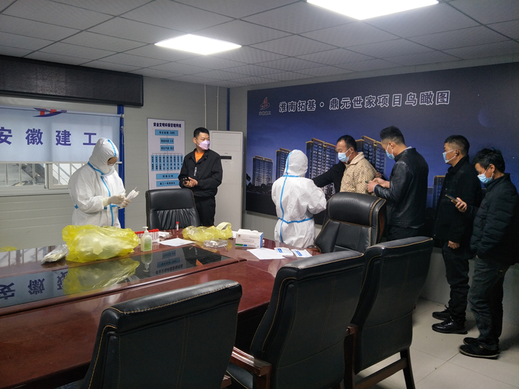 4月18日上午,五公司皖投國濱世家三期項目為落實公司各項防疫和肥西縣政府疫情防控“一周三檢”的要求,同時考慮到項目整體施工已經到裝飾裝修階段,施工工序交叉較多,現場施工較忙等原因,項目部邀請核酸檢測單位進入施工現場,分班組、分人員完成現場400余人的核酸檢測任務,各班組做完核酸檢測立即投入現場安全生產,這樣既落實了項目防疫各項要求,也保證了現場的施工進度要求。