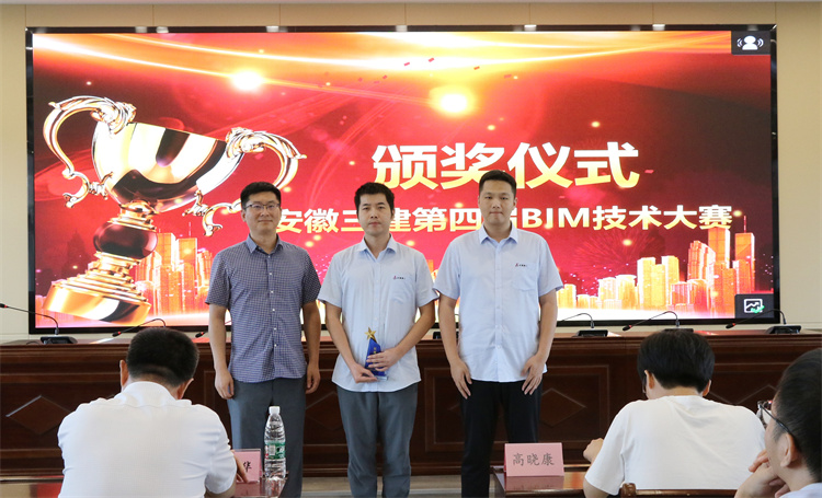 大賽特邀省市BIM五名專家組成評審組,對參賽BIM作品進行點評。省BIM專家萬翔高度肯定了9支代表隊的BIM展示作品,并指出,本次BIM大賽充分展示了安徽三建作為省屬大型國有企業的時代性和團隊性,團隊年輕化且團結協作能力強,參賽作品智能化應用點多、可操作性強,達到了預期的效果。