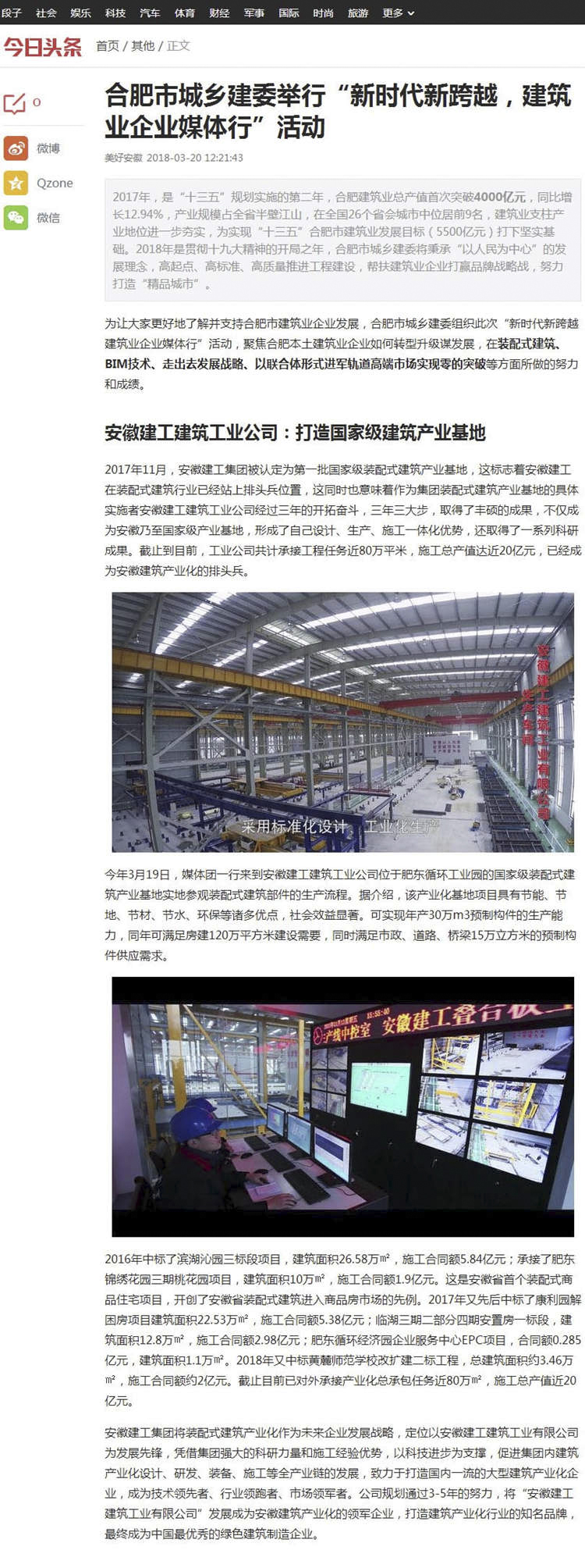 今日頭條、巴士頭條、安徽建筑業(yè)——合肥市城鄉(xiāng)建委舉行“新時代新跨越,建筑業(yè)企業(yè)媒體行”活動