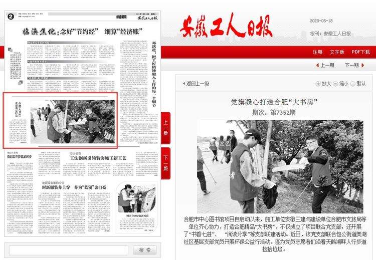 安徽工人日報——黨旗凝心打造合肥“大書房” 發布時間:2020-05-18 來源:安徽工人日報 撰稿人:李艷麗 瀏覽次數:20231 報道鏈接:http://epaper.xunbaoah.com/index/article/articleinfo?doc_id=3334
