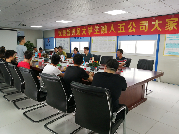 五公司在皖投·國濱世家二期項目為新分配的10名大學生舉辦迎新座談交流會。五公司領導班子成員及部分老員工參加座談會。會上,五公司副經理瞿偉就職業規劃、參加工作需要注意事項提出9點要求;支部副書記尹力與新員工交流興趣愛好;經理左從義對新員工提出殷切希望。 會后10名新員工將在皖投·國濱世家二期項目部接受為期2個月的技能培訓。