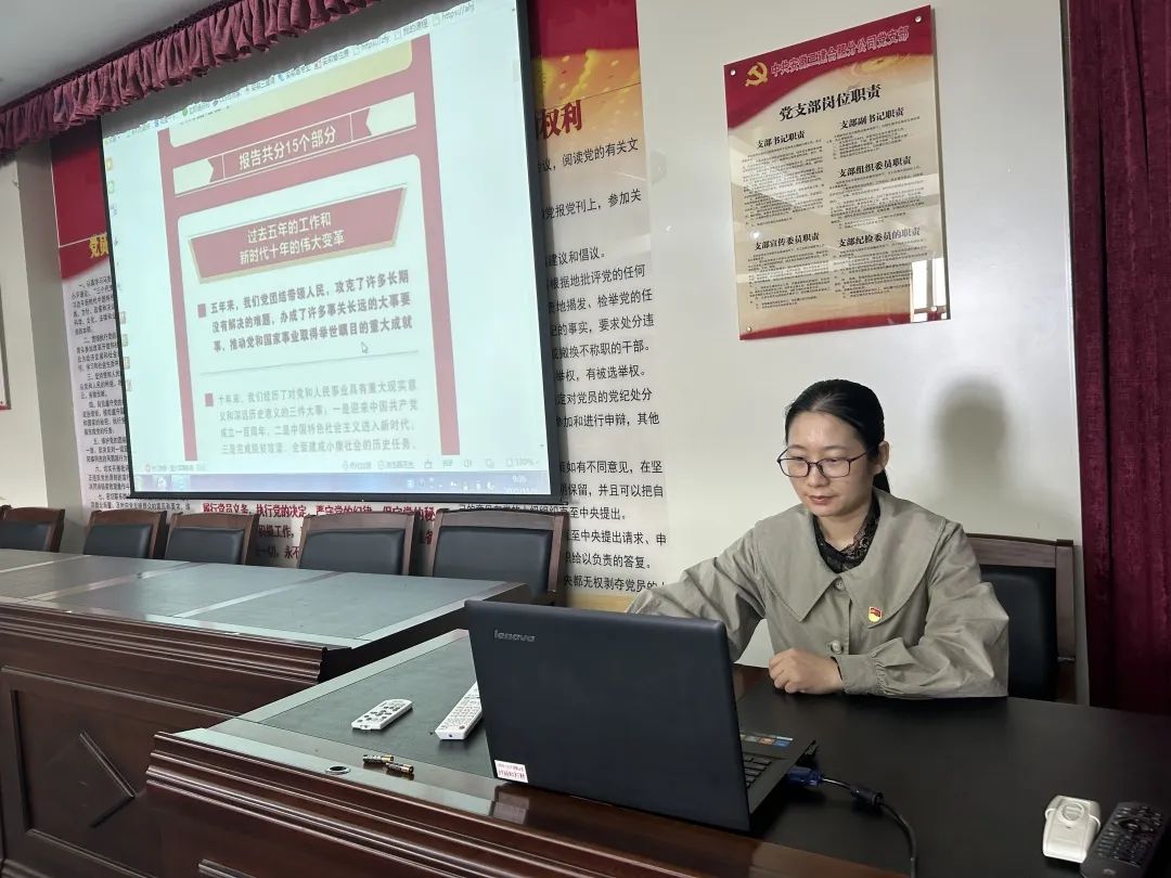 為深入學習貫徹黨的二十大精神,在機關迅速掀起學習貫徹的熱潮,10月31日,總支組織“云端黨課”學習宣貫黨的二十大精神。黨支部副書記陽海英以《踔厲奮發,勇毅前行——聚焦中國共產黨第二十次代表大會》為主題,詳細解讀二十大報告提出的十五個部分的內容,結合機關實際工作對二十大報告進行了深入淺出的解讀,認真研讀黨的二十大報告和黨章,領悟黨的二十大提出的新思想、新論斷,深刻領會報告精神實質。