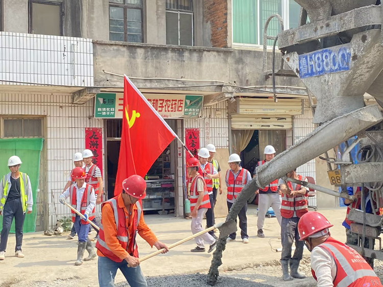 三十崗鄉三豐路集鎮段全長240m,原為4米寬村村通水泥路,因年久失修,路面有局部坑洼,給當地的村民生活出行帶來一定的不便,此條道路也是項目土方外運的必經之路。為感謝當地村民對項目建設的支持,今年6月,八公司清瀾苑項目臨時黨支部主動承擔起該條道路的修復義務,并根據現場實際情況制定了針對性強、可實施性高的道路修復施工方案。在修復過程中,項目黨員干部和多名經驗豐富的一線職工頂住炎熱、突擊搶修,為道路品質提供了有力保障。村民們為感謝搶修組,紛紛拿來礦泉水、西瓜等。