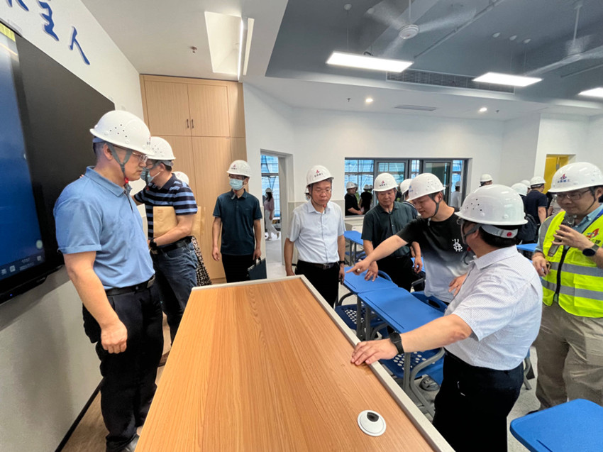 隨后,封安保一行參觀了項目2#樓教學樓樣板間,聽取了裝飾負責人對樣板間施工工藝方面的詳細匯報,對建工三建的質量管理及施工效率給予了充分肯定。