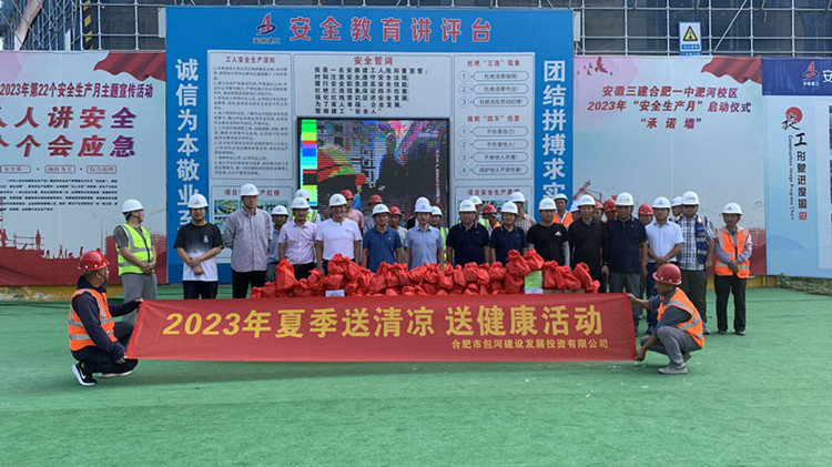 建設(shè)單位領(lǐng)導(dǎo)到公司合肥一中淝河校區(qū)項(xiàng)目建設(shè)一線(xiàn)開(kāi)展“送清涼”慰問(wèn)活動(dòng)