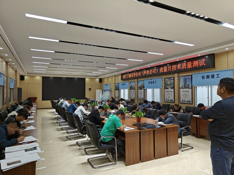 為進一步貫徹落實公司《關于開展2023年全國“質量月”活動通知》文件精神,提高分公司管理人員專業技術能力水平,9月24日上午,建工三建五分公司組織所屬項目技術負責、施工負責、技術員等75名職工在肥西產城融合示范區片區開發項目指揮部會議室進行了技術質量考試。