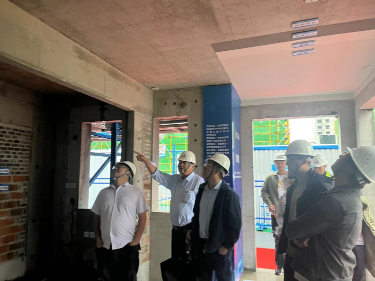 在時代星河二期項目部的觀摩現場,參觀過程中,觀摩人員在項目負責人的帶領下來到PC構件堆放區、質量集中展示區、智慧工地展示區和五號樓觀摩區,認真了解了項目部在工程滲漏專項治理、樣板引路標準化、混凝土施工質量管控標準化、裝配式施工工藝等方面的內容。觀摩人員邊參觀邊思考,不時還互相討論如何將被觀摩項目在細部施工環節中好的做法和先進經驗消化吸收,轉化成為自己項目上的“好點子”,同時還不忘拿出手機,將每個亮點和細節進行拍照。