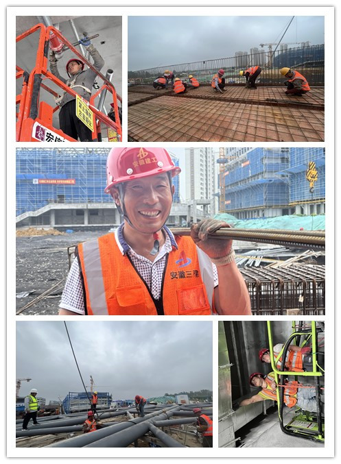合肥一中淝河校區(qū)項目負責人崔沖已經(jīng)有兩年國慶假期沒有回家陪伴親人。“作為一名一線建設(shè)者,在這個舉國歡慶的日子里,能堅守在我的工作崗位上祝福我的祖國,我也覺得很有意義?!比缃裰黧w結(jié)構(gòu)、室外工程已接近尾聲,正是土建、安裝、裝飾交叉施工的重要節(jié)點時期,崔沖和100多名同事一起,主動放棄了假期與家人團聚的機會,搶抓有利天氣,組織現(xiàn)場500多名施工人員科學施工,充分利用施工黃金期,加快項目建設(shè)。