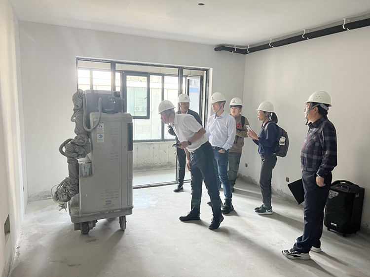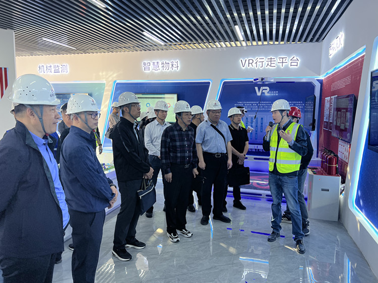 調研組一行實地查看了項目建設和智慧工地應用情況,聽取了項目負責人關于工程概況、裝配式建筑、智慧展廳等相關情況的匯報,重點查看了項目安全VR體驗館和BIM+智慧工地數字中心。隨后,大家還參觀了自動噴涂機器人現場施工技術。