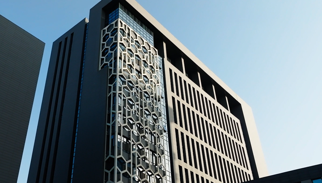 中國科大物質樓占地面積約為43783.8㎡,規劃總建筑面積約為90497.2㎡。由A樓、B樓、C樓、裙房四部分組成,其中B樓與C樓通過裙房組合一體,B樓三層以上通過連廊與A、C樓連為一體。現場探訪可以看到,精美大氣的無機分子構架鋁板外幕墻,造型源于“苯分子式”理念,拼角精確,銜接順暢,飽滿順直。室內各實驗室地面采用玻化地磚、環氧磨石地面;墻面采用陶瓷薄板墻磚、硬包飾面、木制吸音板墻面,整個樓宇環境靜謐整潔。科技展廳吊頂線條圓潤飽滿,四連桿定位弧度精準,氟碳漆光澤明亮;地面環氧磨石整體無縫,抗裂性、耐久性強。學術報告廳石膏板造型頂弧度陣列精準,橡木飾面與鐵灰色吸音板棱角順直,接頭方正,噴頭、廣播、煙感、射燈等末端設備排布規整。