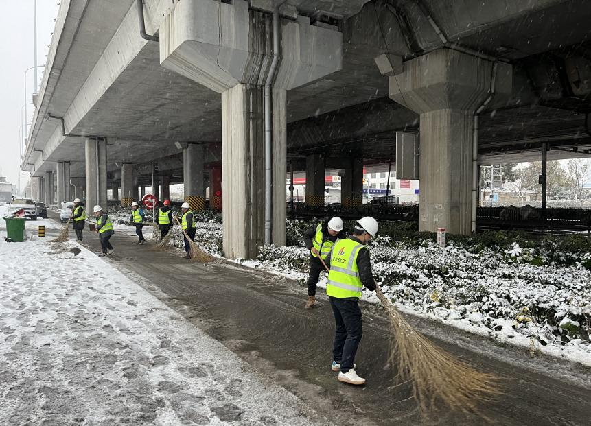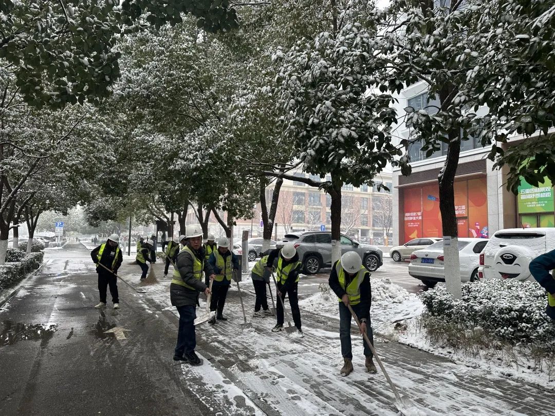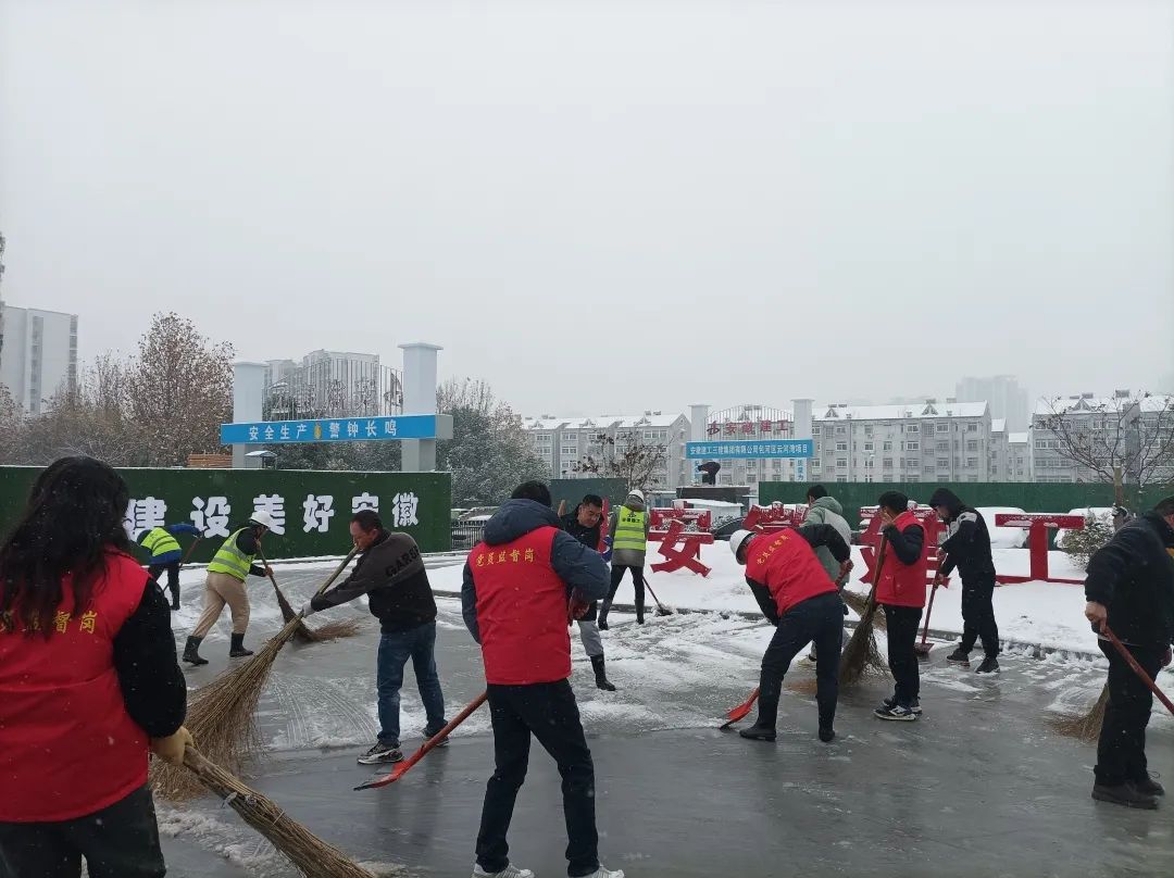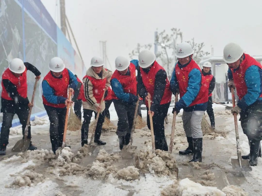 國家級蕪湖經濟技術開發區汽車電子產業園基礎設施建設項目,項目職工組成黨員先鋒隊和青年突擊隊,對項目周邊市政道路、公交站臺及項目辦公區域開展掃雪除冰活動,減少雨雪天氣帶來的安全隱患,保障周邊居民及項目人員安全出行。