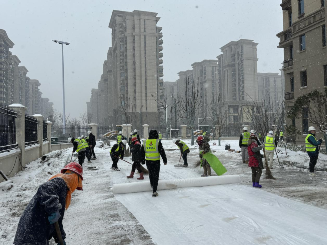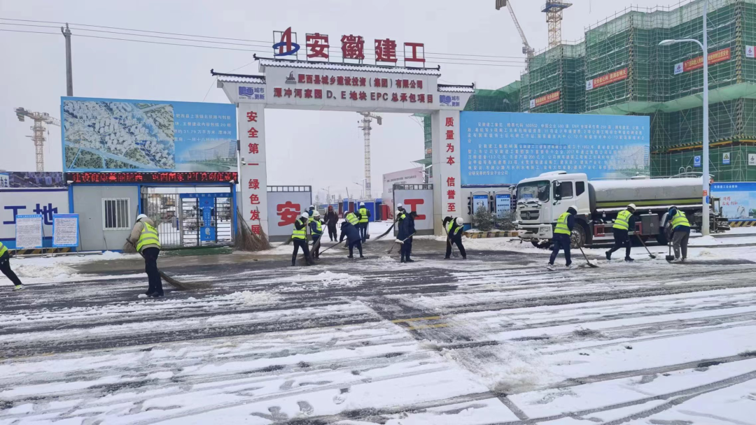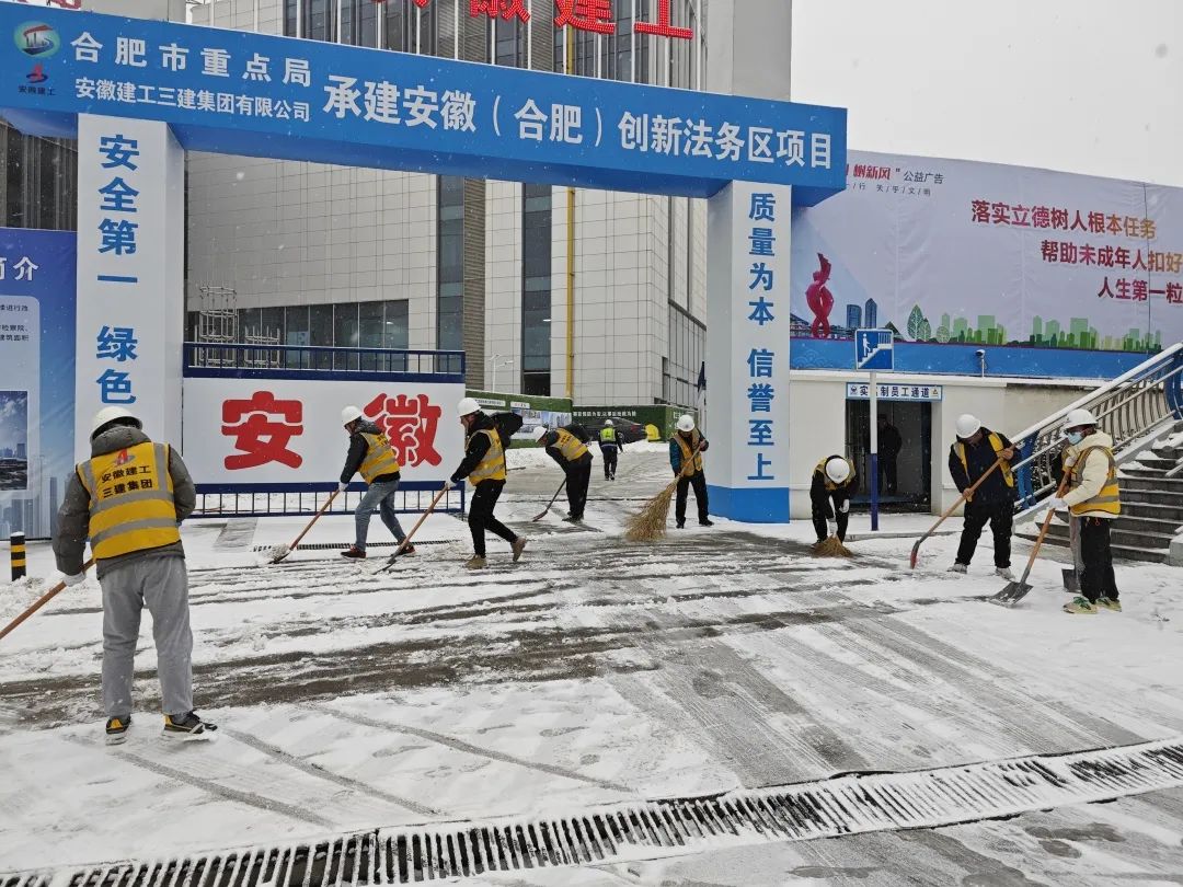 安徽(合肥)創新法務區項目組織全體管理人員清掃項目出入口及項目內部道路上的積雪,為項目施工安全提供堅強保障。