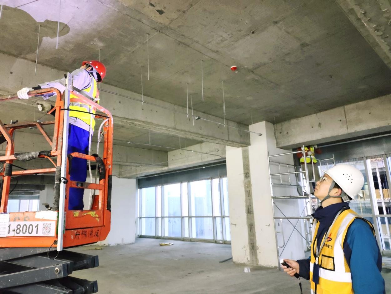 ②4-21層墻面布管完成95%,頂面配管完成60%。消防主管及支管安裝完成80%,橋架安裝95%。衛生間風管安裝30%。