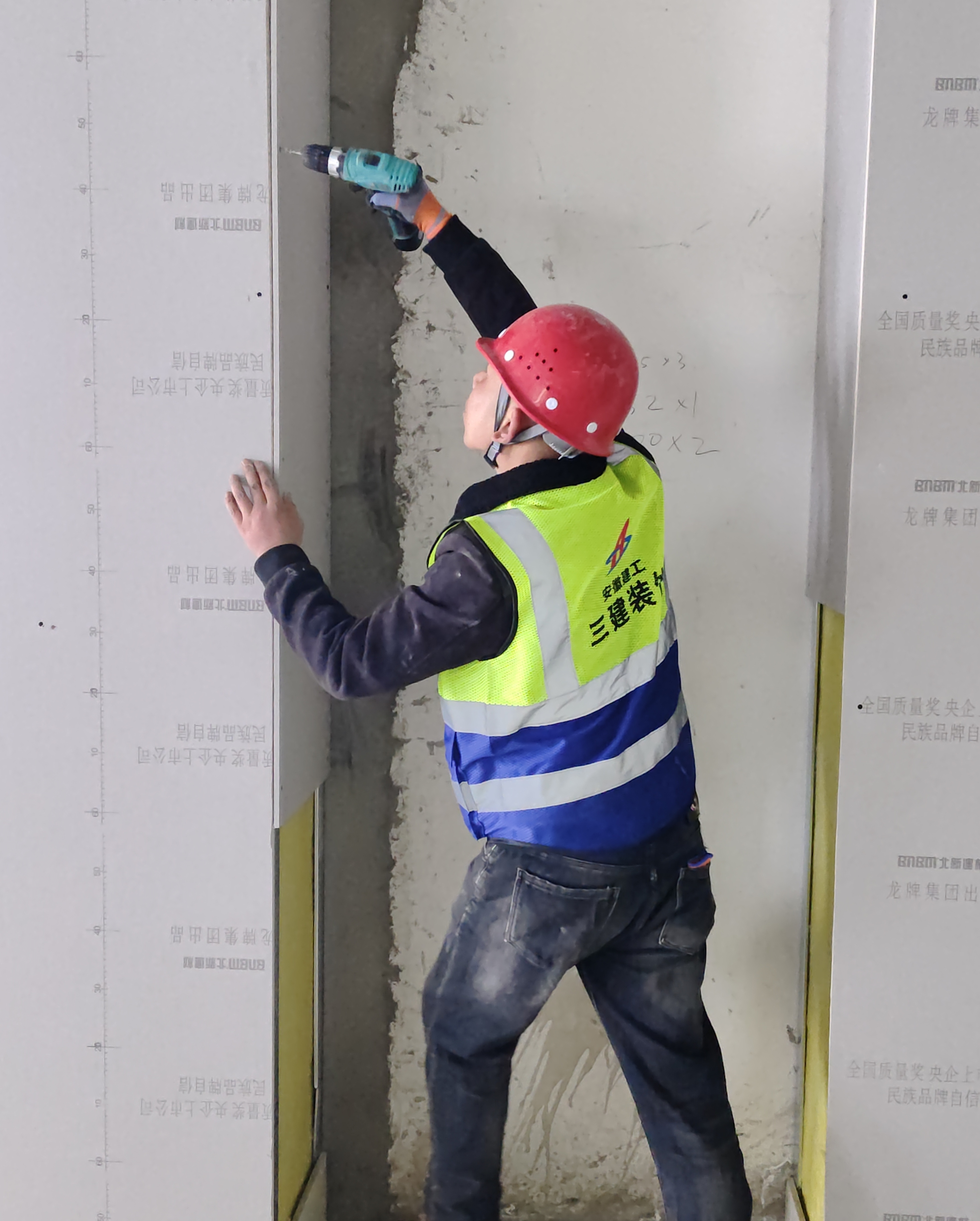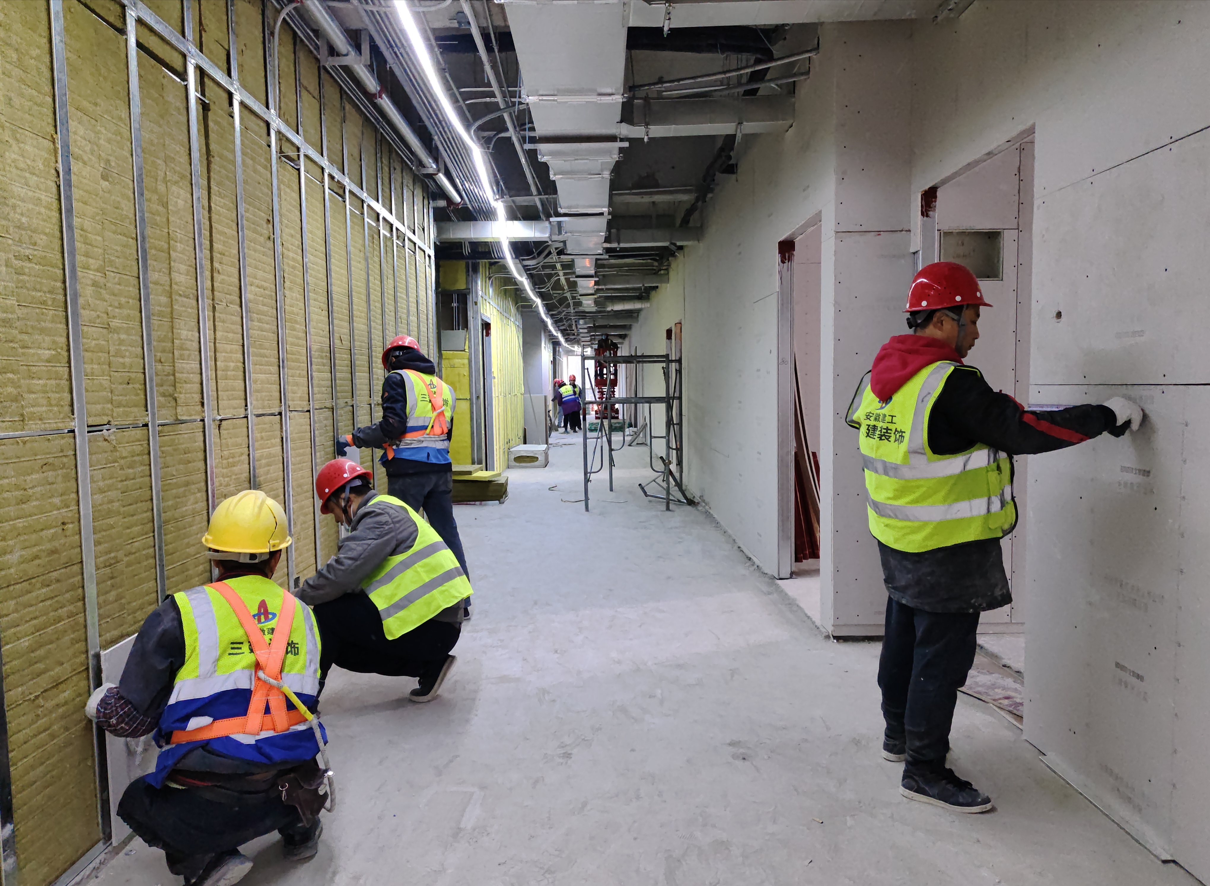 ④19層以上輕鋼龍骨隔墻已完成80%,墻面膩子批刮已完成30%。
