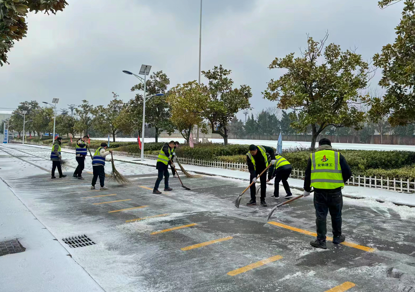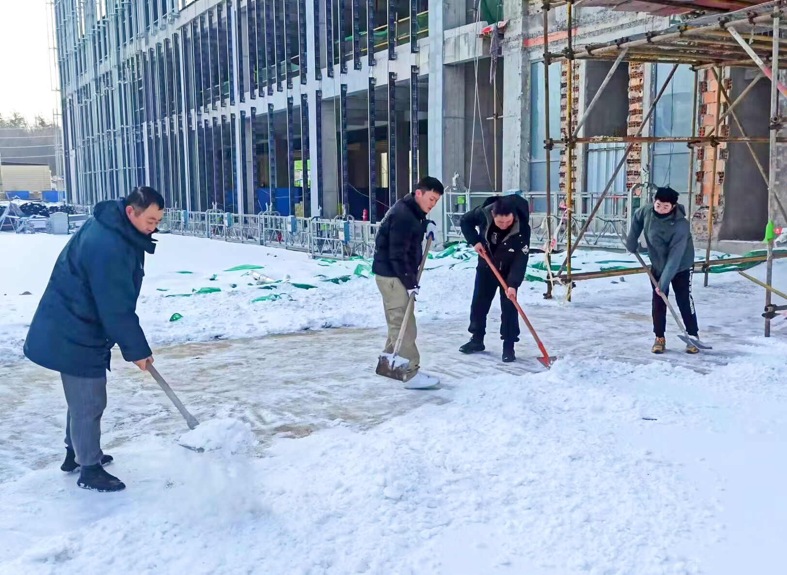 2月25日,安徽大學綠色產業創新基地項目管理人員及時清掃施工現場及辦公區積雪,破除路面冰塊,避免因路面濕滑發生跌倒、扭傷等安全事故,全力保障施工安全和工程進度。