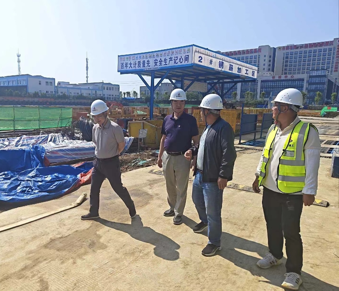 李躍進實地察看項目建設情況,詳細詢問了目前工程進展、質量管控、安全文明、黨紀學習教育等工作內容,并對目前項目建設工作給予充分肯定。他指出,黨紀學習教育要輻射到整個項目班子成員,做到全面學習,強化所有管理人員紀律意識,提升廉潔自律能力,自覺規范自身行為;鳳慶路中學項目作為長豐縣2024年度重點民生工程項目,要嚴抓安全工作、保證質量,強化項目管理,凝聚團隊力量,迎難而上,真抓實干,確保建設高品質工程;同時要關心員工日常生活情況,及時解決發生的困難,提升員工工作幸福感。