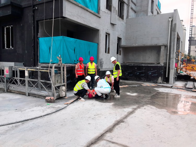 演練現(xiàn)場模擬項(xiàng)目施工現(xiàn)場一工人在高處作業(yè)時(shí),不慎墜落導(dǎo)致受傷的場景。演練過程中,各應(yīng)急小組按照預(yù)先制定的預(yù)案,分工明確、緊密配合、通力合作、有條不紊開展救援。設(shè)置警戒區(qū)、保護(hù)現(xiàn)場、維持秩序、查看并簡單處理傷員傷情、聯(lián)系120醫(yī)護(hù)團(tuán)隊(duì)、信息上報(bào)……從發(fā)生險(xiǎn)情到處置結(jié)束,整個(gè)演練環(huán)節(jié)緊張有序,救援處理得當(dāng),事故調(diào)查清楚,達(dá)到預(yù)期效果。