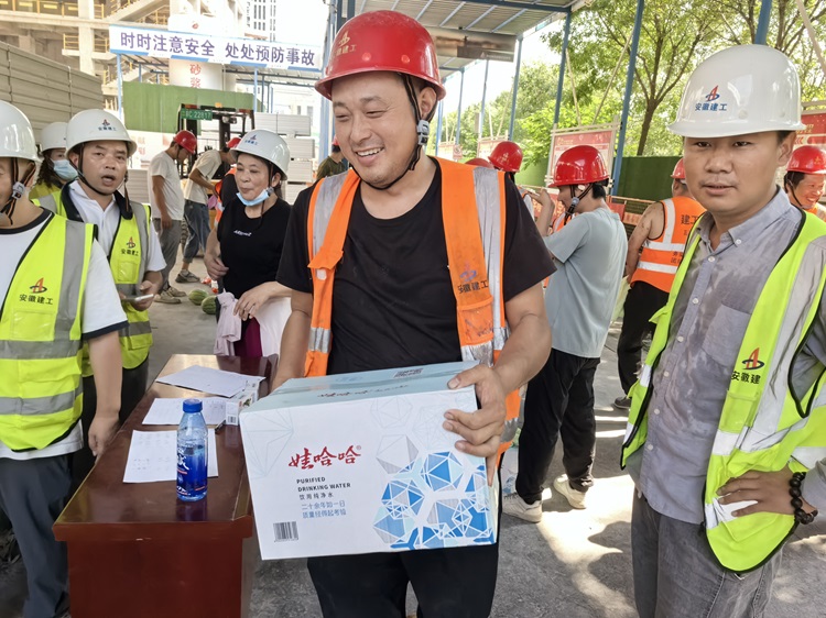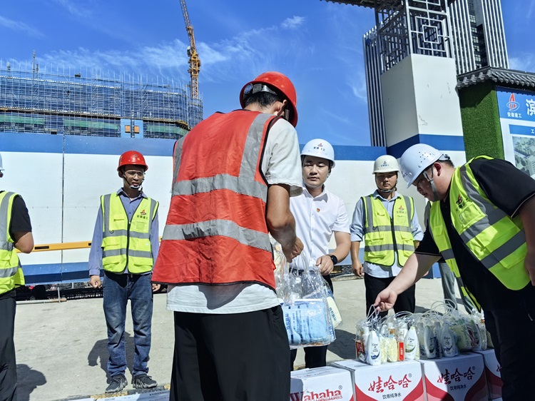 華東公司領導班子深入項目一線慰問了堅守在高溫下施工的員工,走訪了員工的工作生活區,對項目防暑降溫物資配備情況進行了了解,并發放防暑降溫用品,為項目人員送去夏日清涼。