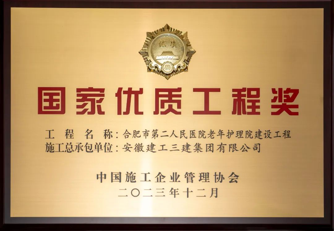 12月24日,2022-2023年度第二批國(guó)家優(yōu)質(zhì)工程獎(jiǎng)獲獎(jiǎng)名單揭曉。安徽建工三建集團(tuán)承建的合肥市第二人民醫(yī)院老年護(hù)理院建設(shè)工程榮獲“國(guó)家優(yōu)質(zhì)工程獎(jiǎng)”。至此,公司已累計(jì)獲得4項(xiàng)“國(guó)家優(yōu)質(zhì)工程獎(jiǎng)”。