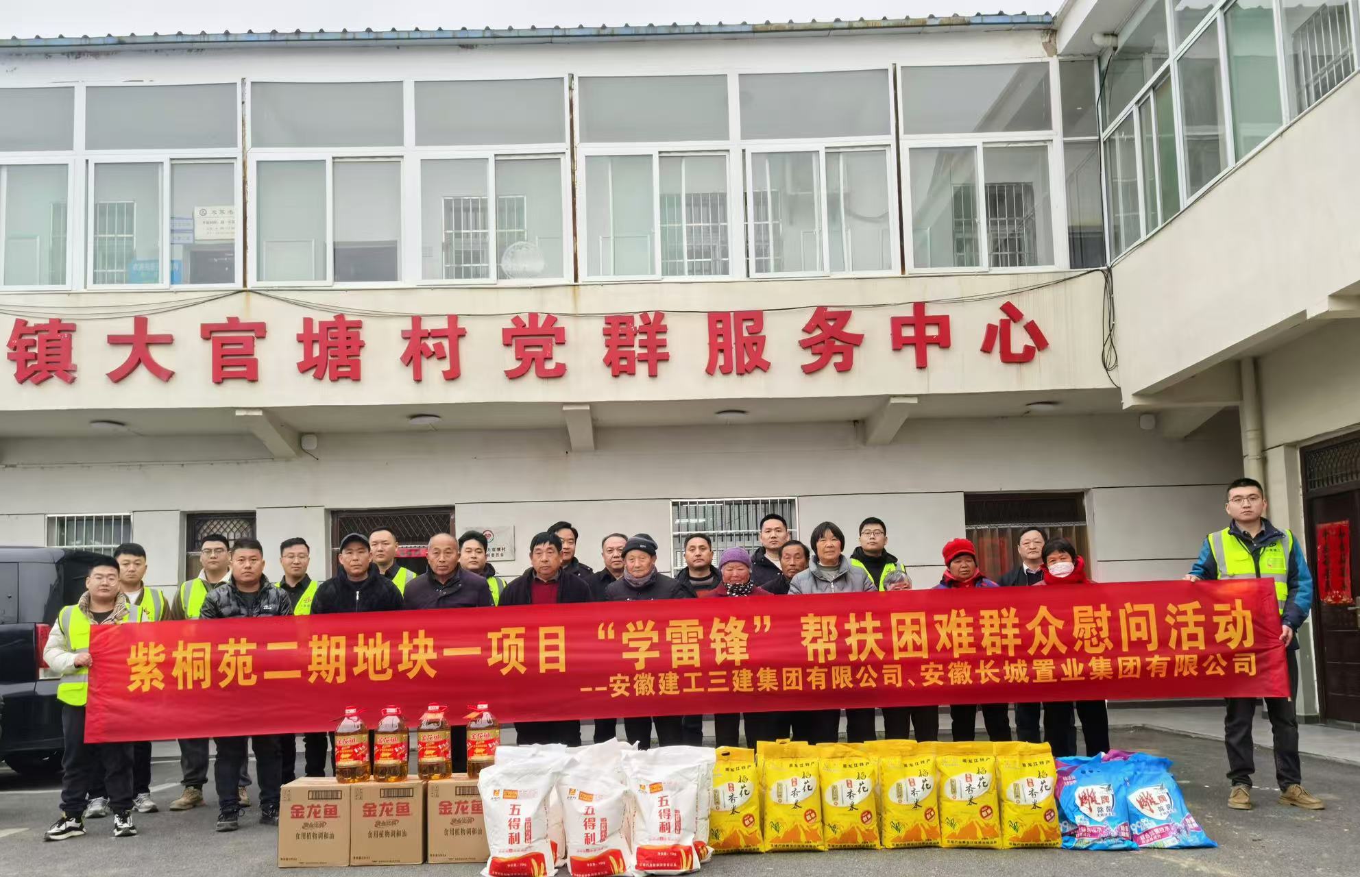 十分公司紫桐苑二期地塊一項目黨支部聯合雙墩鎮人民政府村鎮規劃建設辦、安徽長城置業集團有限公司組織項目管理人員前往長豐縣雙墩鎮大官塘村委會開展“學雷鋒”幫扶困難群眾慰問活動,為困難群眾送去了米、油、面等生活物資,并與他們親切交談,幫助人民群眾解決生活困難,鼓勵他們保持樂觀心態。
