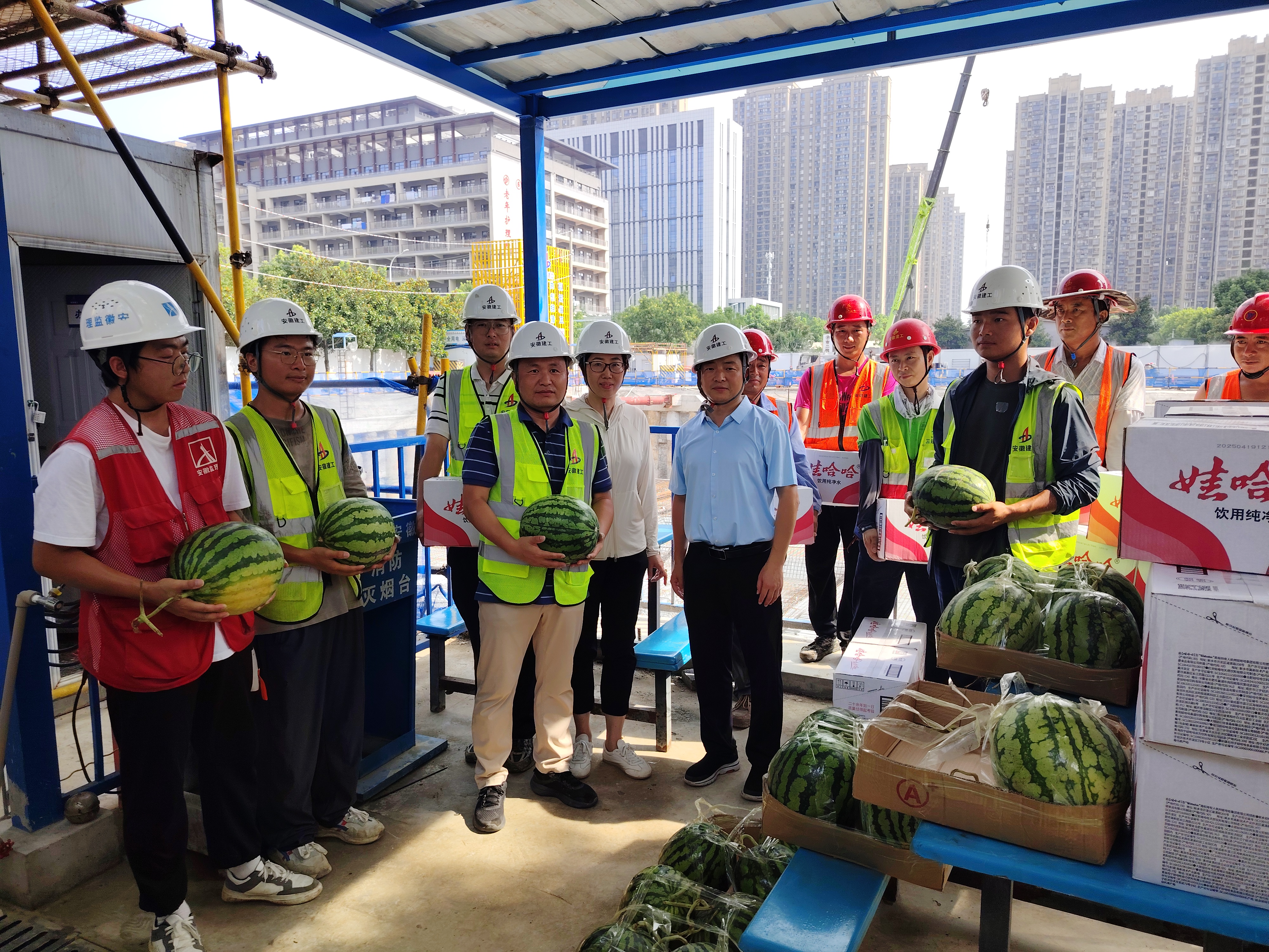在項目施工現(xiàn)場,陳華一行為工人們送上精心準(zhǔn)備的防暑降溫物資,包括甘甜多汁的西瓜、清涼解渴的礦泉水以及藿香正氣水等防暑藥品。陳華親切詢問工人們的工作和生活情況,叮囑大家要合理安排作息時間,切實做好高溫防護(hù),確保身體健康和施工安全。