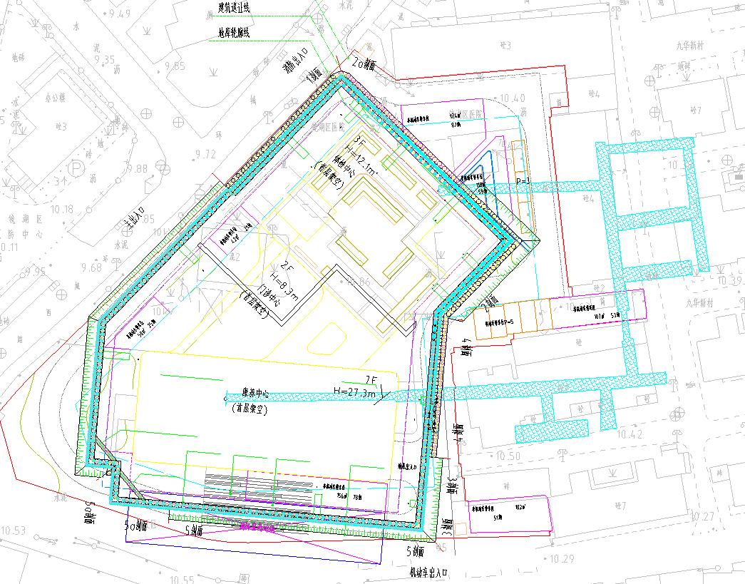 面對緊迫的工期要求和巨大的技術(shù)壓力,項目部沒有絲毫遲疑,第一時間組織管理人員就人防洞加固方案召開緊急攻堅會,廣泛征求意見建議。根據(jù)勘探報告顯示,臨近九華新村且靠近基坑的位置存在老舊人防洞,此處的灌注樁在施工時,需結(jié)合施工單位制定的人防洞口處理方案采取加強措施,同時要確保灌注樁貫穿人防洞,并嵌固進入人防洞下部4層全風(fēng)化層內(nèi),深度不得小于2米。經(jīng)過反復(fù)研究論證,項目團隊決定采用壓密注漿法,對紅線內(nèi)防空洞上方、側(cè)邊以及洞內(nèi)可能發(fā)生塌陷的土層進行壓密注漿加固。該方案經(jīng)過公司審批后,組織專家進行方案論證工作,確保了方案的科學(xué)性和可行性。通過在人防洞頂施工灌注孔,放置導(dǎo)管至孔底,采用細石混凝土對人防洞進行充填加固。對洞頂至底板墊層底區(qū)域土體以及人防洞兩側(cè)土體采用高壓注漿的方法進行加固,壓密注漿材料采用水灰比1.0的水泥凈漿,最終,項目團隊于8月5日成功完成該項加固工程。