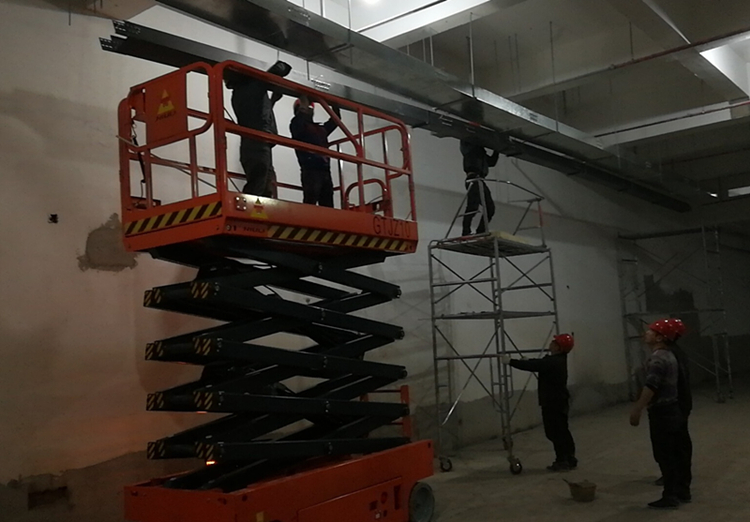 一線作業(yè)工人說(shuō):“這機(jī)器一開(kāi),穩(wěn)當(dāng)當(dāng)?shù)木蜕先チ耍苫羁於嗔?!”?/span>安徽創(chuàng)新館工程因建設(shè)需要進(jìn)行建筑輪廓及功能修改,安裝作業(yè)的時(shí)經(jīng)常需要工人到高處進(jìn)行作業(yè)。通常項(xiàng)目高處作業(yè)需要4位工人搭設(shè)腳手架和人字梯攀爬至高處進(jìn)行施工,效率低,存在一定的安全隱患。四臺(tái)升降機(jī)進(jìn)場(chǎng)后,僅需要2人配合就可以進(jìn)行橋架、消防管道的安裝作業(yè),且方便攜帶工具及材料,不僅節(jié)約了勞動(dòng)力,還有效的提高了安全性及工作效率。現(xiàn)場(chǎng)管理人員表示四臺(tái)升降機(jī)進(jìn)場(chǎng)對(duì)提高項(xiàng)目安裝進(jìn)度,保障項(xiàng)目建設(shè)將發(fā)揮重要作用。