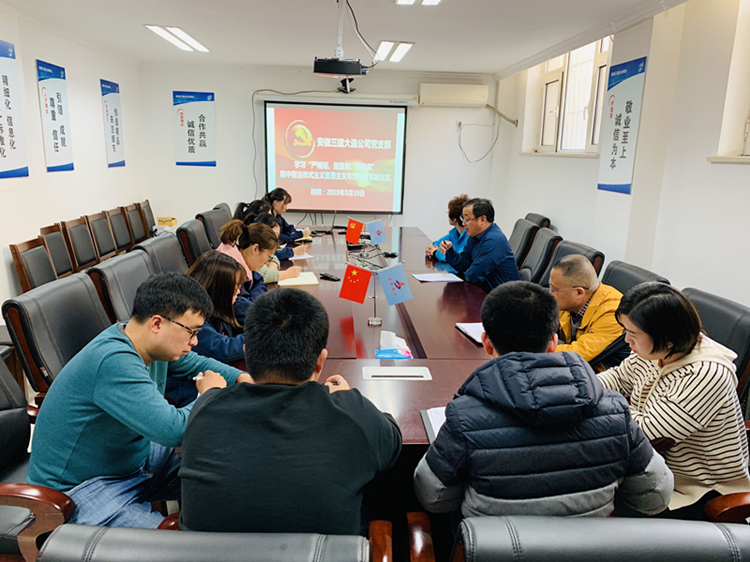 為深入學(xué)習(xí)貫徹習(xí)近平總書記關(guān)于力戒形式主義、官僚主義的重要論述和指示批示,堅(jiān)持“三嚴(yán)三實(shí)”,大連公司黨支部3月19日下午3:30在會議室召開專題學(xué)習(xí)會議,傳達(dá)學(xué)習(xí)集團(tuán)公司黨委、安徽三建公司黨委有關(guān)開展“嚴(yán)規(guī)矩、強(qiáng)監(jiān)督、轉(zhuǎn)作風(fēng)”集中整治形式主義官僚主義專項(xiàng)行動的文件精神。支部黨員和入黨積極分子共15人參加了專題學(xué)習(xí)會議。