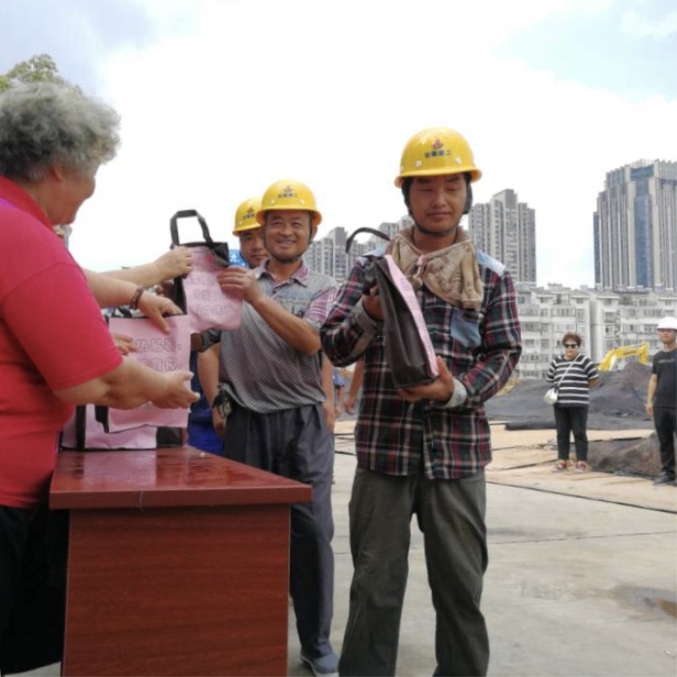 活動中,志愿者們提前為大家準備了大量的礦泉水、西瓜、綠豆湯等降暑物品,并叮囑施工人員道:“天氣太過炎熱,大家一定要注意身體,防暑為首要”。志愿者向筆者說道“項目人員為我們建樓房蓋新家,高溫天氣建筑工人們尤為辛苦!我們希望可以在炎日夏季為他們帶來絲絲涼意”,表達我們的感謝。社區工作站還分別向大家發放“酷熱易暑,牽掛有你,珍愛自己,安全生產”關愛布袋,袋中有著風油精、十滴水、毛巾等防暑降溫藥物及“三減三健,全民健身”宣傳畫冊。