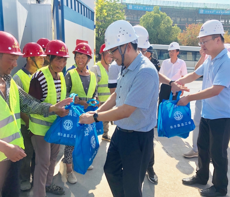 7月31日上午,長豐縣縣委副書記、縣長黃韡,縣總工會黨組書記朱彥俠,縣重點工程建設管理中心局長趙孟一行到安徽三建十公司承建的北城醫院項目開展“送清涼”活動,為高溫中堅守崗位的一線工人送來了白糖、毛巾、香皂、洗發水等防暑降溫用品。安徽三建十公司經理張家香、項目經理鄭杰等人陪同。
