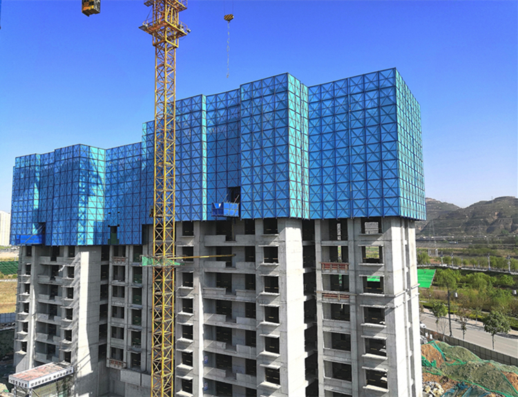 西北公司彬州世紀(jì)城宗地一地塊項(xiàng)目的2棟高層全部采用全鋼型附著式升降腳手架。較普通架體而言,該架體安全性能搞、操作人員少,方便快捷,爬升一層僅需1小時(shí),架體在組裝完成后不需要材料堆碼場地,整個(gè)建筑外立面清爽干凈,顯著提高了項(xiàng)目的文明施工,并在使用過程中檢查維護(hù)工作量較小、用時(shí)少,從而更大的提高了項(xiàng)目的生產(chǎn)效率。項(xiàng)目部表示在后續(xù)開工的樓體建設(shè)中將繼續(xù)采用該爬架。