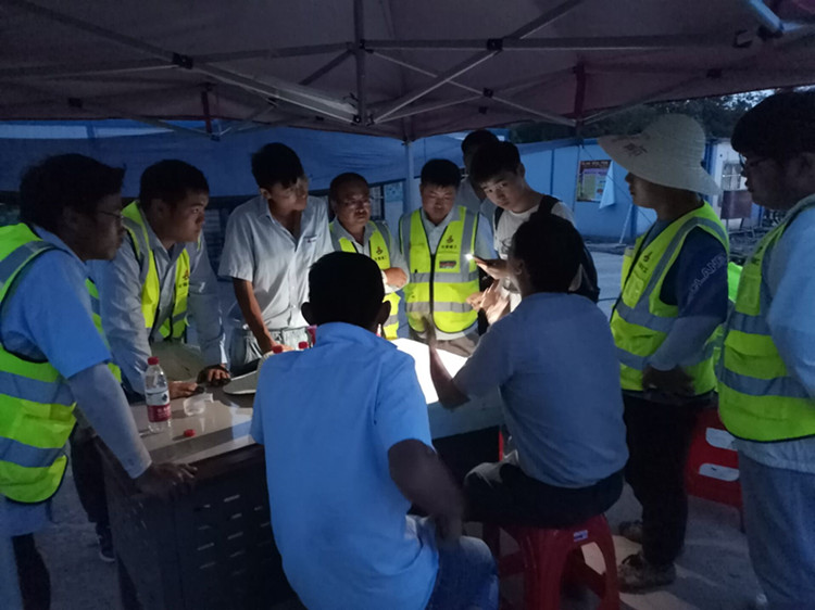 面對嚴峻的極端天氣,為確保施工安全,不影響施工進度,項目緊急做好應急預案,分公司領導和項目班子趕赴在項目一線,靠前指揮,提高決策效率。項目緊盯天氣預報,不僅根據項目地勢情況設置相應的排水溝,安排數十臺柴油抽水機,隨時待命,及時排水,為項目施工創造有利條件;為了保證小雨及雷陣雨期間土方正常施工,項目部還加快現場道路硬化施工,增加道路磚渣基層回填厚度。