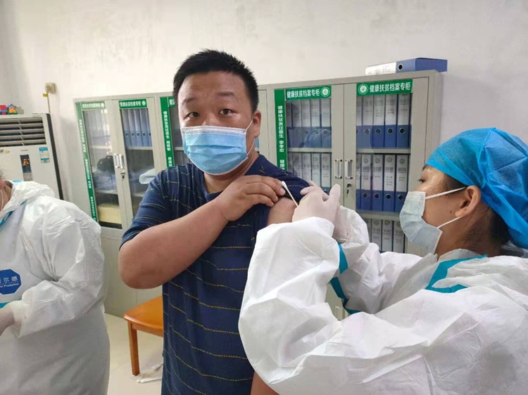 5月14日下午2點,十公司水岸人家項目黨支部組織項目管理人員、監理、第三方檢測人員以及現場作業工友共計35人,就近到長豐縣雙墩鎮白大塘社區衛生室接種了新冠疫苗。