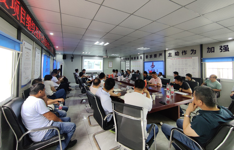 會上,項目經理劉大權帶領全體人員重溫一百年前的紅船會議,并指出,項目全體參建人員要學習紅船精神,堅定理想,百折不撓,團結起來,全力建設優質工程。為了進一步推動黨史學習教育走深走實,發揮黨建促生產作用,隨后,各專業負責人用圖片展示的方式對現場存在的安全、質量、進度問題進行分析,提出解決方案。