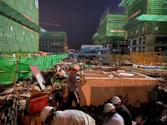 2021年7月22日晚間,臨廬欣榮農民返鄉創新創業基地建設項目施工現場手電燈光和機械燈光交相輝映,現場一派繁忙的施工景象。在應急電源及燈具設備的照明下,管理人員正在對現場各類鋼管扣件進行分類、整理和打包,此次行動持續到夜間11點。為東區多層廠房外架拆除、鋼管退場提前做好準備,搶抓施工黃金時間,快速推進項目建設。