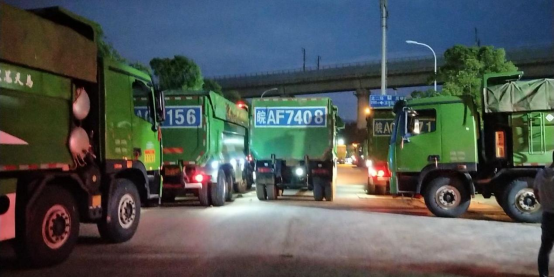 與此同時,在三百公里外的合肥五里片區二期復建點(E、F地塊)項目,為了趕在7月30日工期節點前完成土方外運任務,項目組織投入使用18臺挖掘機、120輛運輸渣土車,挑燈夜戰力保進度,確保每天完成土方外運10000方以上。晚間11時,施工照明燈照亮了整個施工現場,燈光與夜空中的星光遙相輝映,挖掘機、渣土運輸車等施工機械在工地來回穿梭,轟鳴聲不斷……夜深了,但項目管理人員像戰士一樣,不怕苦、不怕累,始終堅持在一線,衣服被汗水浸濕,也要保證按期完成任務。正是因為有了這樣一群默默付出的人,施工現場才能持續保持著高效運作。到目前為止,項目累計完成出土量32.5萬方,占土方總量93%。