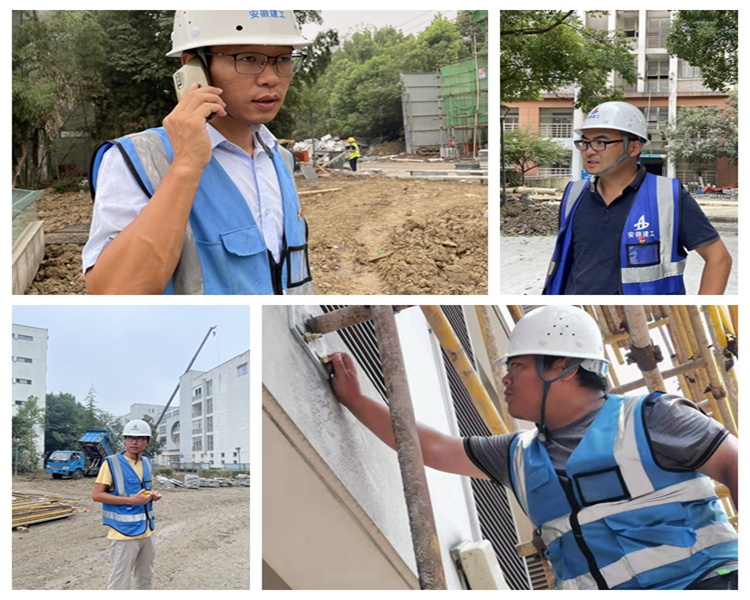 項目建設期間涌現出了一大批堅定信念、盡職盡責、敬業奉獻的生動典型。項目經理李國,臨危受命,沉著應對,堅定信念,帶領團隊克服工期緊、困難多、要求高等重重險阻壓力,把控全局的同時著眼細節,全力推進項目搶工建設,在一中項目搶工建設過程中發揮主導核心作用。銀城旭輝樾溪臺項目經理張健,兼顧自身項目收尾工作的同時,樹立大局意識,迅速轉變身份,擔任一中項目實驗樓、行政樓及體育館改造工程區域負責。黃山恒大美麗之冠項目經理年福永,服從調度聽指揮,緊盯恒大項目決算對賬工作的同時,在一中項目擔任生活區及教學區室外道排、綠化及廣場、雨污水改造工程區域負責,喊得嗓子都嘶啞了,揣著藥就著礦泉水繼續堅守崗位。二公司安全科長張立榮,長期蹲點一中項目,干起了項目安全員,“安全為天,項目干的再好,出了安全事故,一切白搭,一中正值搶工快上,現場節奏快,也正是班組工人最麻痹、最困乏、最暴躁、最容易違規操作的時候,一不留意就會存在安全隱患”。他每天馬不停蹄地穿梭在現場進行安全巡檢,每個犄角旮旯都不發過,為項目搶工建設把好了安全第一關。和他們一樣盡職盡責保障項目建設的還有二公司技術質量科長齊蔚、項目施工員唐龍泉、任安暉…… ,在項目上,晚上加班到11點多、每天步走3.5萬步、日夜奮戰、曬傷依舊堅守崗位、放棄與家人團聚、犧牲休息時間都是常態。