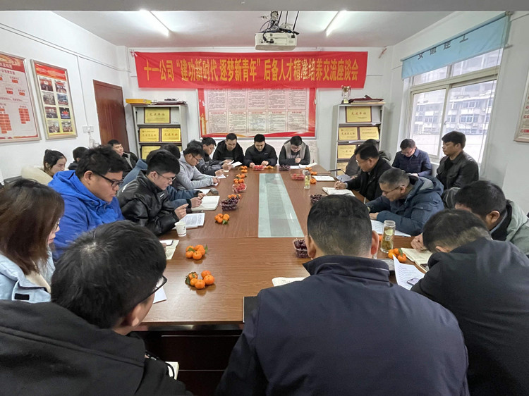 為及時了解青年員工的思想動態,精準培養青年人才,儲備后備人才隊伍,1月22日上午,十一公司在會議室召開“建功新時代 逐夢新青年”后備人才精準培養交流座談會,分公司領導班子成員、項目經理、青年職工共40余人參會。
