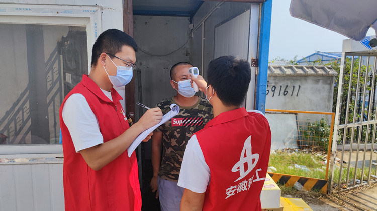 自項目進入封閉管理以來,項目黨支部帶領前期成立的疫情防控領導小組高效運轉,凝心聚力,眾志成城,全面落實各項防控工作任務。黨員同志迅速行動,匯聚紅色力量。“您好,根據地方政府的要求,近期不能出入生活區,請您回到生活區休息......”,在生活區的門口身穿紅馬甲的黨員同志程子豪正在耐心認真地勸導即將外出的工人返回宿舍;“請大家帶好口罩,間隔一米排好隊,順序進行核酸檢測”,身穿紅馬甲的黨員同志陳爽爽正在引導工人有序排隊進行核酸檢測。連日來,在項目疫情防控戰場上值班執勤、安全消殺、防疫宣傳、摸排宣傳核酸檢測的第一現場,到處都活躍著身穿紅馬甲的黨員同志。他們沖鋒在項目疫情防控的最前線,筑牢疫情防控屏障。“作為一名黨員、越是關鍵時刻,越要沖鋒在前,不能絲毫退縮!”項目黨員程子豪說。