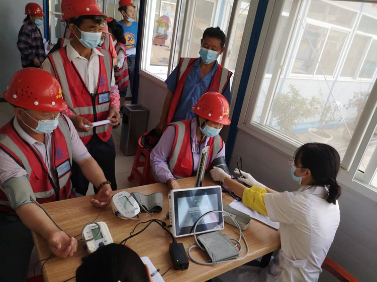 為確保此次健康體檢活動高效順利開展,項目部嚴格落實屬地防疫防控政策標準,精心組織,邀請醫(yī)護人員來到項目現(xiàn)場。在確保項目有序施工的前提下,以分班組、分時段、分批次的形式,組織安排職工們進行了體檢,體檢項目包括心電圖、血常規(guī)、血壓、視力等多個方面,職工們自覺有序地排隊參加各項檢查,并就相關健康問題與體檢醫(yī)生進行了交流,進一步了解了自身的健康狀況。醫(yī)護人員詳細宣講職業(yè)病防范及新冠肺炎疫情防控等方面相關知識,并結(jié)合體檢指標結(jié)果給出針對性的預防保健建議。