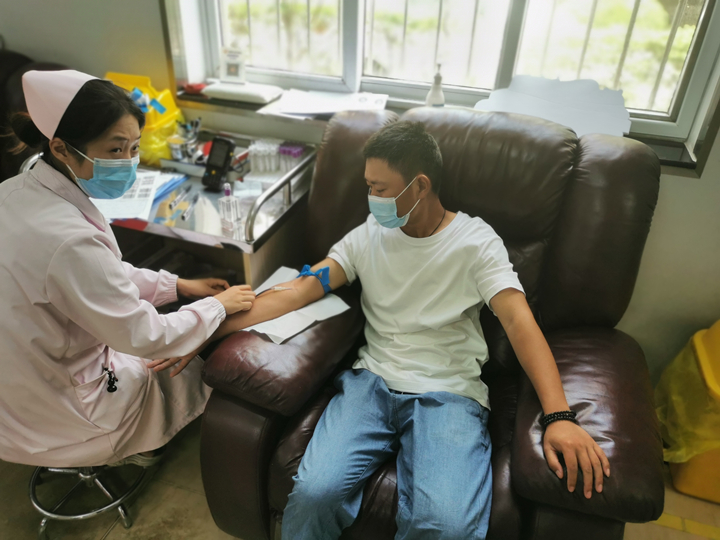 在獻血現場,大家在血站工作人員的指引下,認真填寫獻血登記表,有序進行檢查,血液初檢合格后,在采血室進行集中采血。