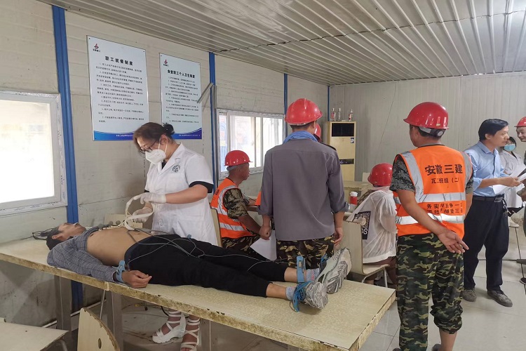 為提高廣大職工在高溫天氣下作業(yè)的自我預(yù)警和保護(hù)意識(shí),切實(shí)關(guān)愛員工生命健康,7月9日,上海公司邀請(qǐng)蕪湖路街道社區(qū)衛(wèi)生服務(wù)中心(原安徽三建職工醫(yī)院)六名醫(yī)生進(jìn)入項(xiàng)目部為員工進(jìn)行健康體檢。