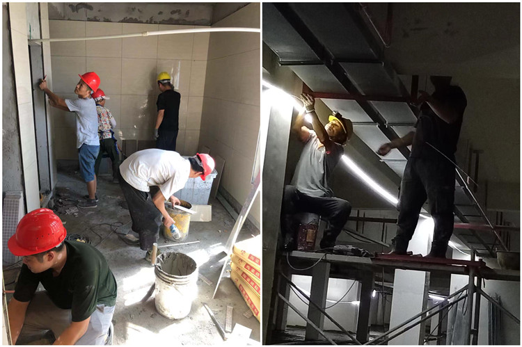 截至目前,天長恒大湖山半島項目已完成客餐廳、臥室頂棚石膏線條工作,墻面膩子粉刮白工作,墻磚、地磚已大量進場,下一步,將進行大規模貼磚等工作。相信在公司的大力支持和分公司全體職工的共同努力下,天長恒大湖山半島項目部一定能打贏這場攻堅戰,完成保交樓光榮使命!