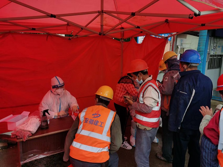 項目執行經理汪旭說:“以黨員、入黨積極分子為骨干力量,按照安全、就近、方便、高效的原則,通過設立項目臨時檢測點,緩解社區防疫工作壓力,體現安徽三建國企擔當,承擔社會責任,進一步筑牢疫情防線。”