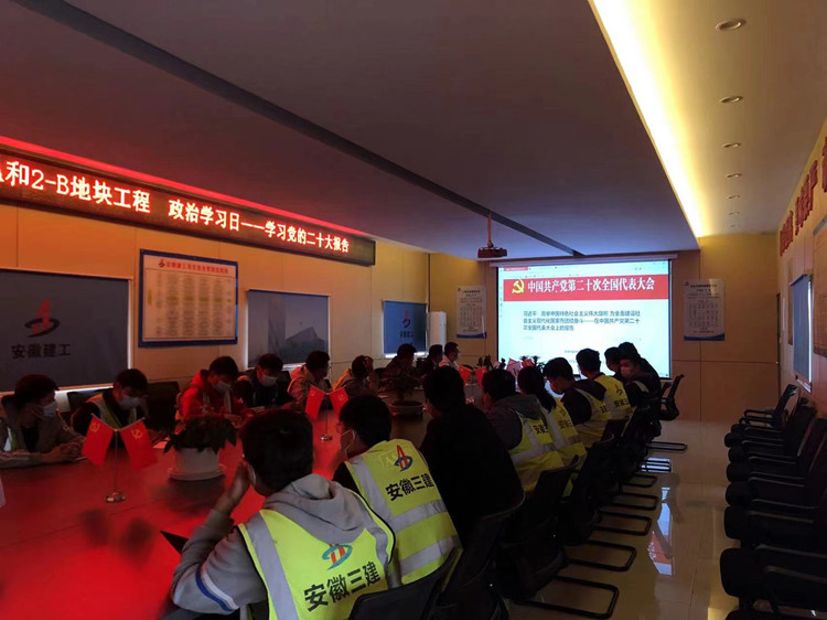 對黨的知識的學習有助于凝心聚力、思想升華,起到學以致用的成效。項目部通過集體學習各類黨建資料,在理論和實踐上得到了正確的指導。項目黨支部帶領黨員職工集體學習了《習近平談治國理政》第四卷的內容、“中央紀委國家監委及安徽省紀委監委公開通報的違反中央八項規定精神典型問題,省紀委監委2022年中秋、國慶節點糾“四風”樹新風工作提示及建工紀發[2022]15號文件,組織全體管理人員觀看“中國共產黨第二十次全國代表大會開幕式”,項目黨支部書記、項目負責人張羿帶頭領學“新時代國企基層黨建50講”等。同時項目還定期開展“政治學習日”活動,一方面通過對黨建知識的學習,不斷提升青年職工的政治素養,凝心聚力干項目,另一方面,實踐出真知,實踐長真才,通過黨建活動的開展,真正讓青年職工做到上心用心,善于總結思考。同時融合項目管理的一些技巧、溝通方式,項目還開展了有關混凝土計劃方量預算、補方技巧、與各類班組的溝通方法、管理人員間的溝通方法等內容的學習和交流,讓學習服務實踐,讓方法發揮成效。